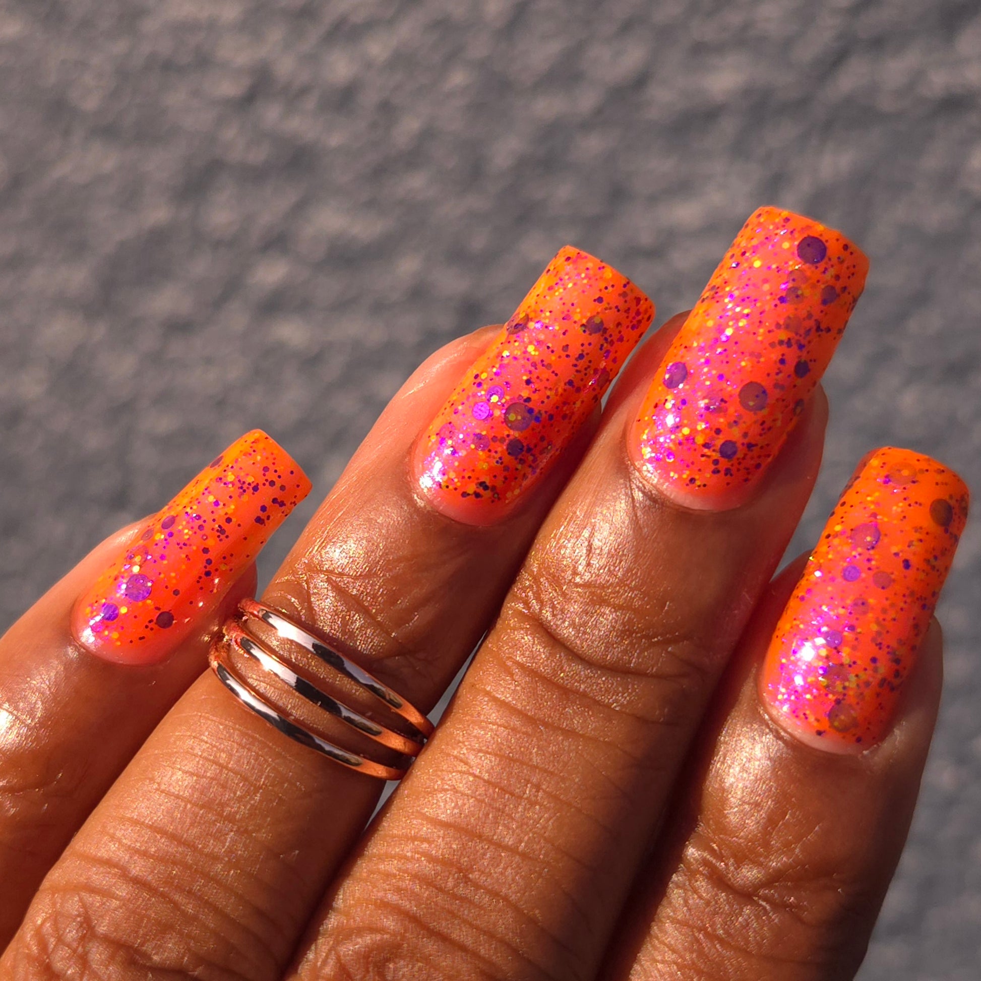 Please Note: These nail polishes contains flakes/glitter and will dry with a slightly textured finish they require 1-2 coats of Glossy top coat for a smooth finish.
