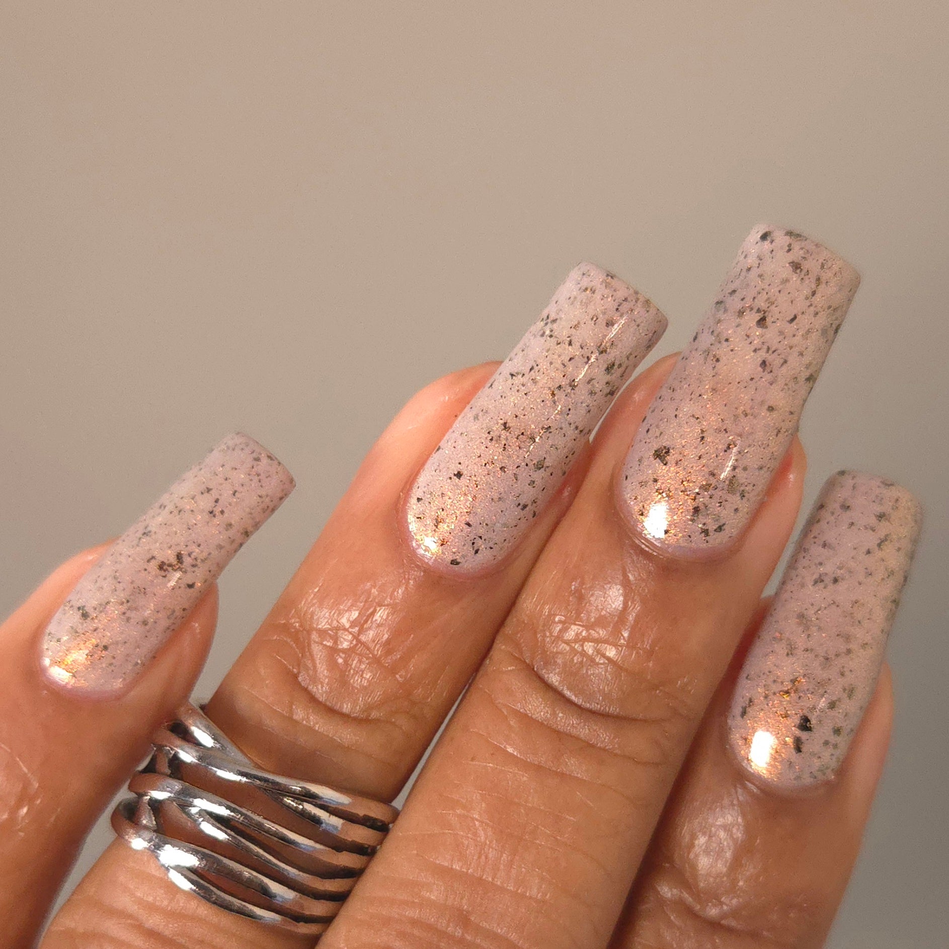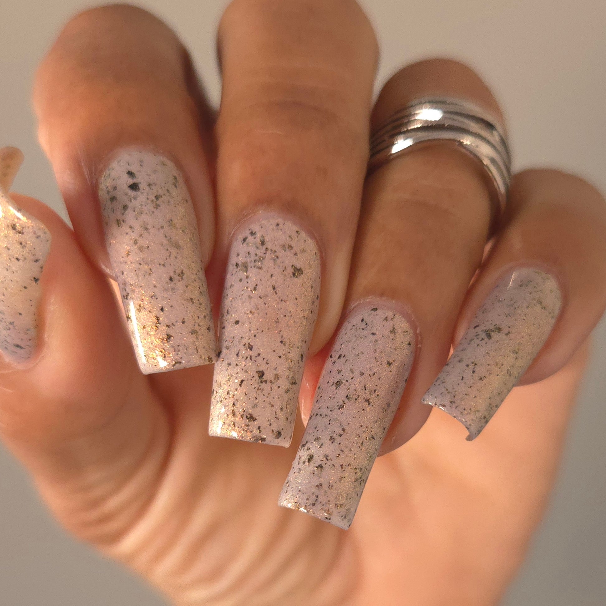 Please Note: These nail polishes contains flakes or glitter and will dry with a slightly textured finish they require 1-2 coats of Glossy top coat for a smooth finish.