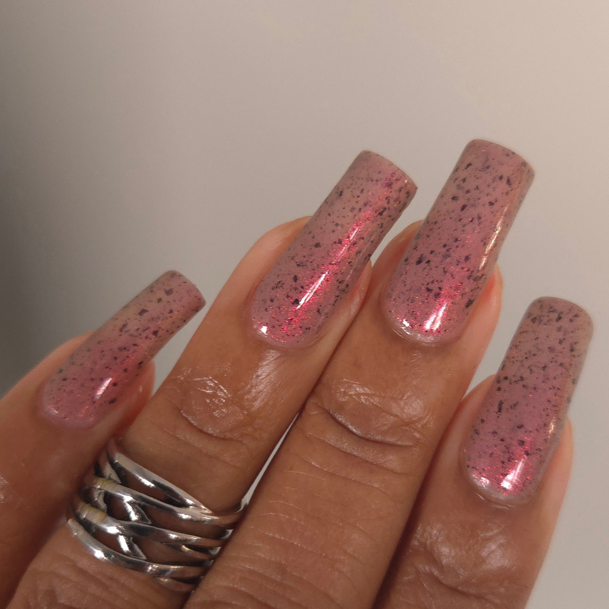 Please Note: These nail polishes contains flakes or glitter and will dry with a slightly textured finish they require 1-2 coats of Glossy top coat for a smooth finish.
