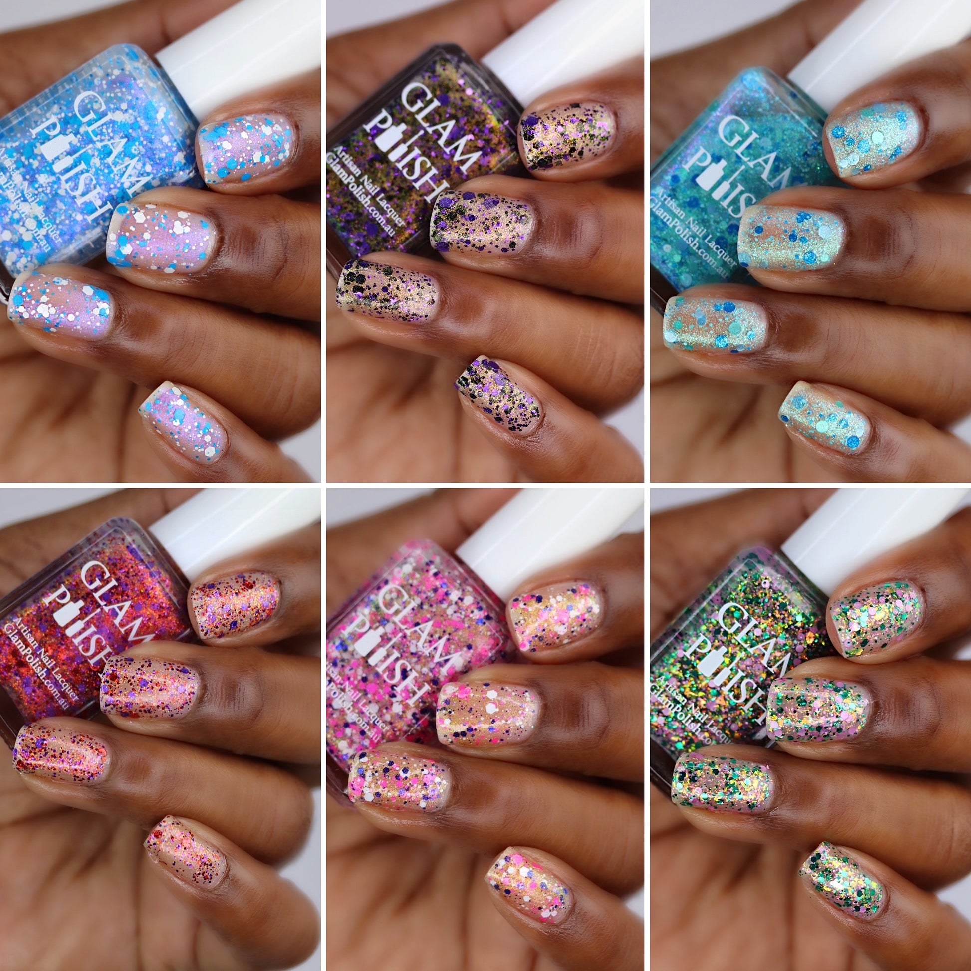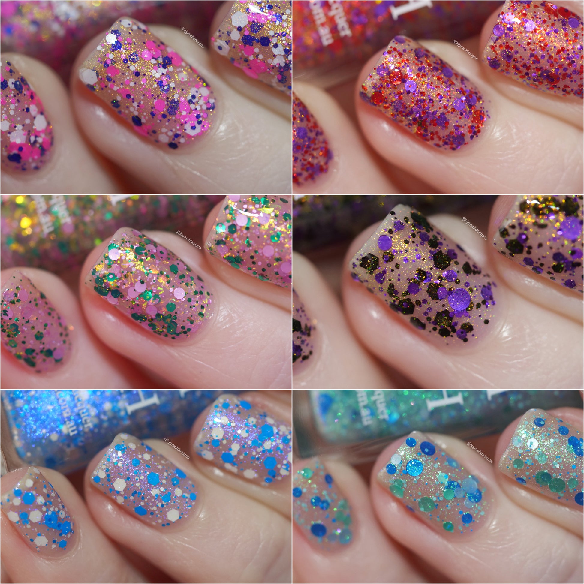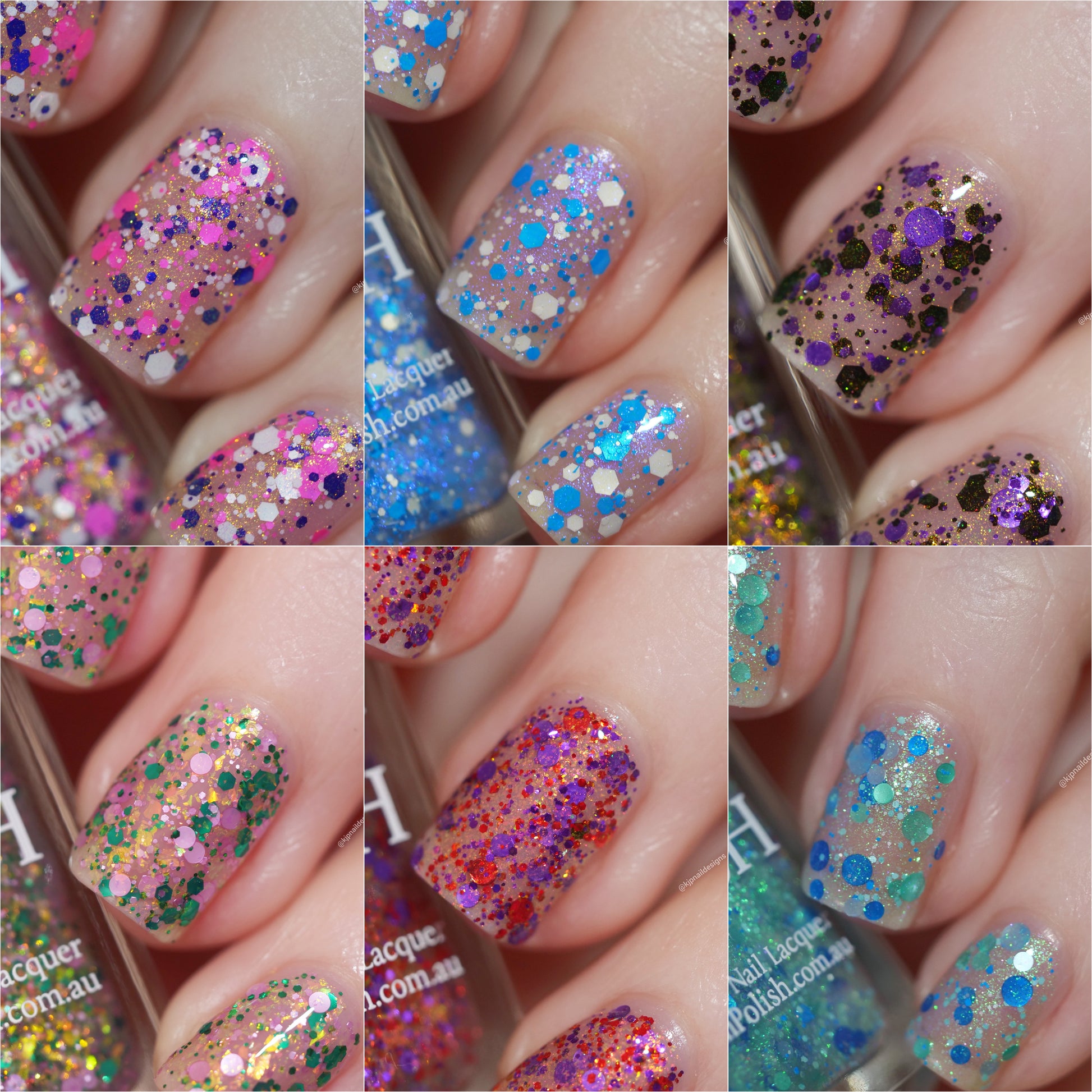 Please Note: These nail polishes contain falkies and glitter and will dry with a slightly textured finish they require 1-2 coats of Glossy top coat for a smooth finish.