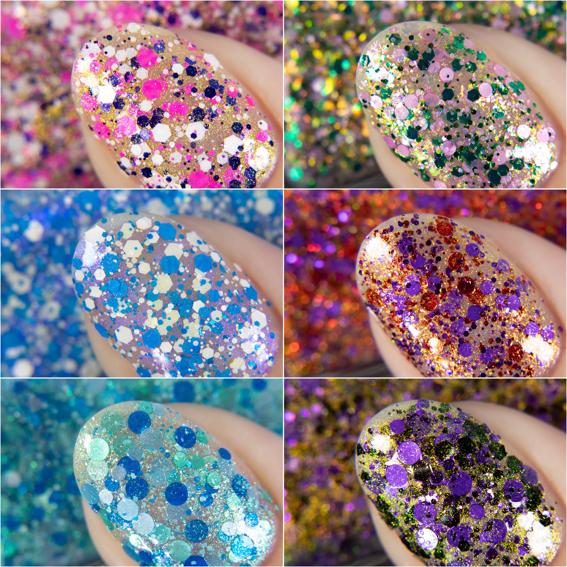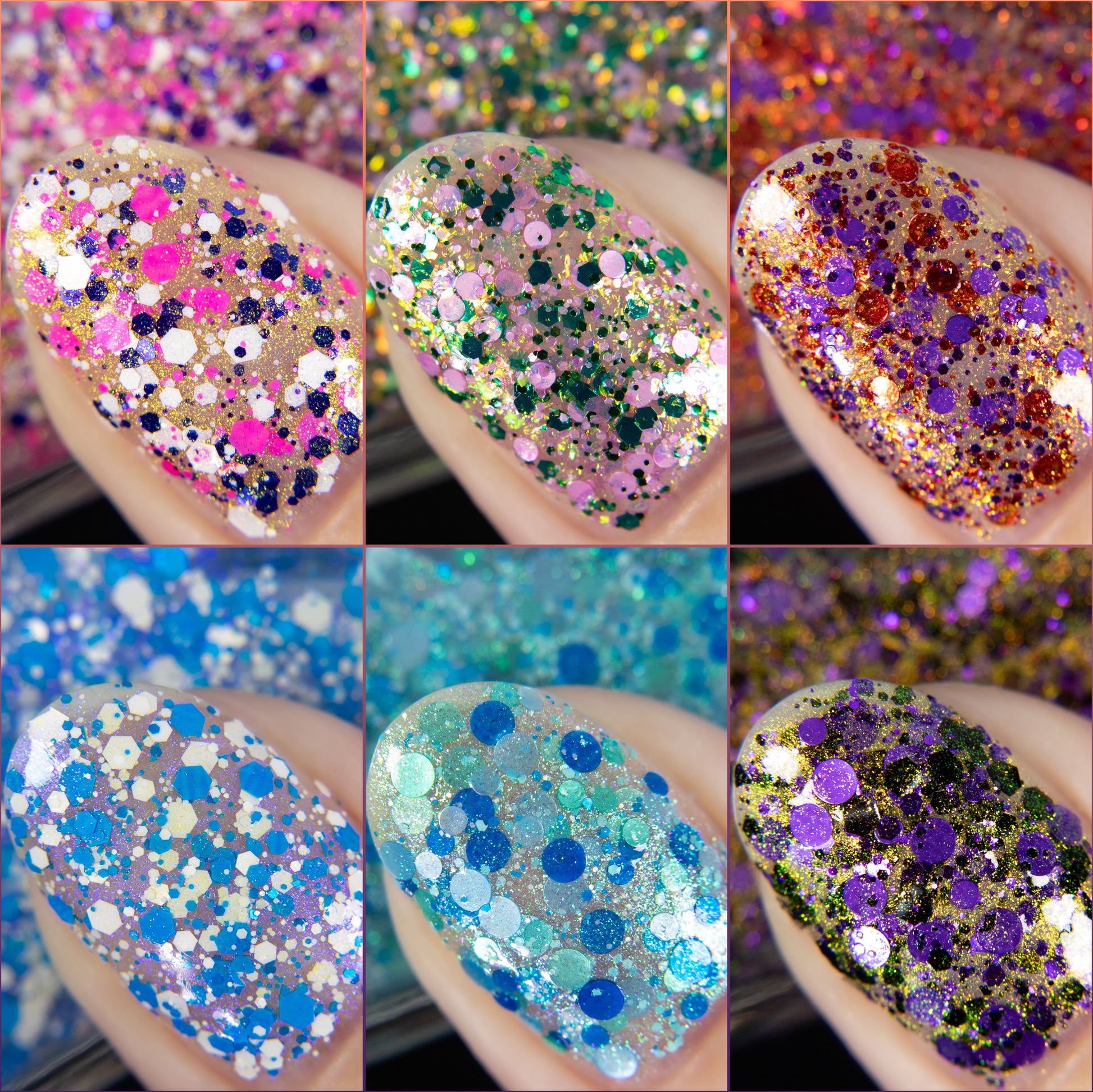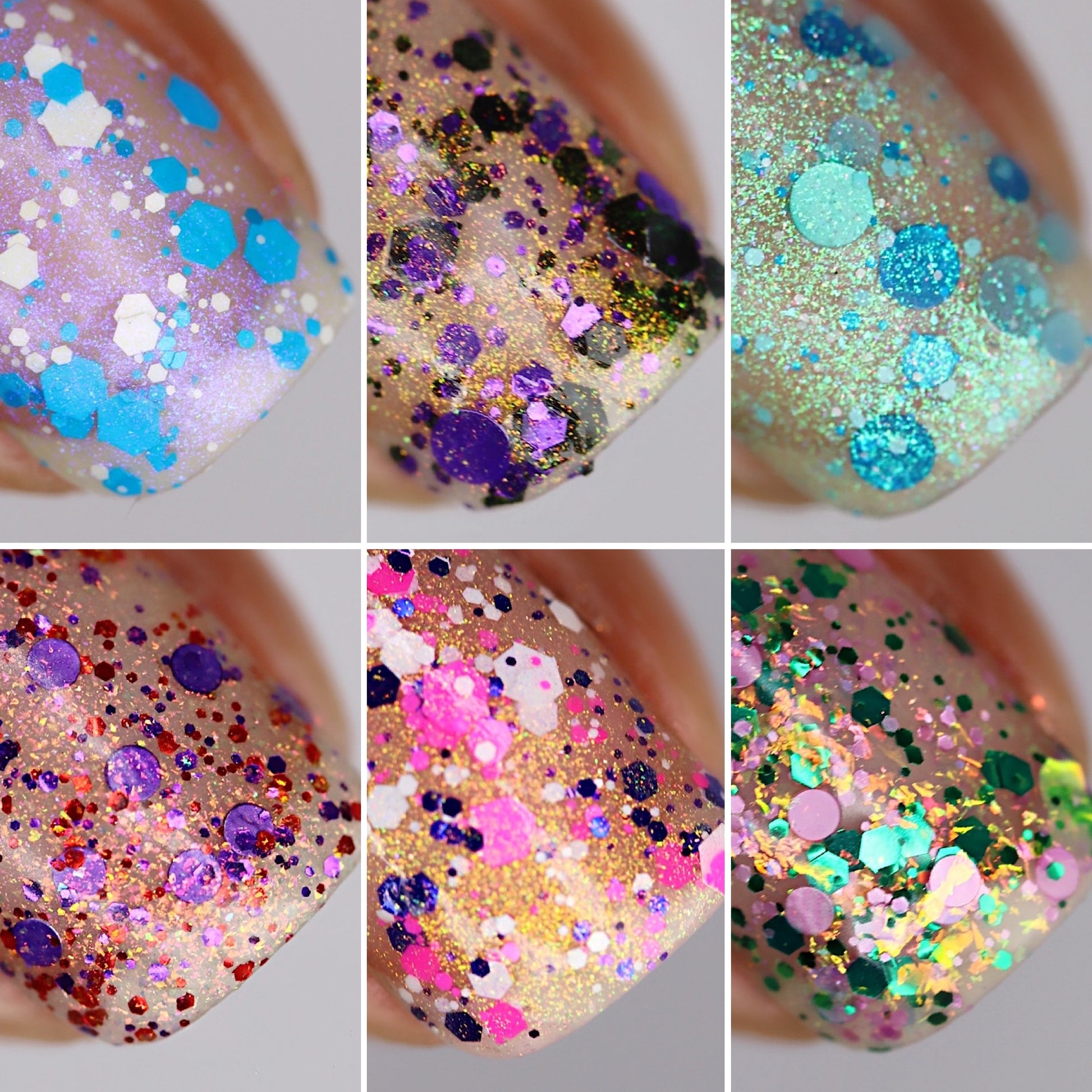 Please Note: These nail polishes contain falkies and glitter and will dry with a slightly textured finish they require 1-2 coats of Glossy top coat for a smooth finish.