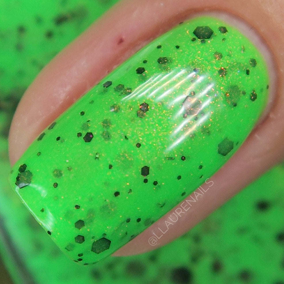 Batches may vary from batch to batch due to these polishes being mixed by hand, some pigments and glitters may settle to the bottom of the bottle, please shake bottle thoroughly before use.