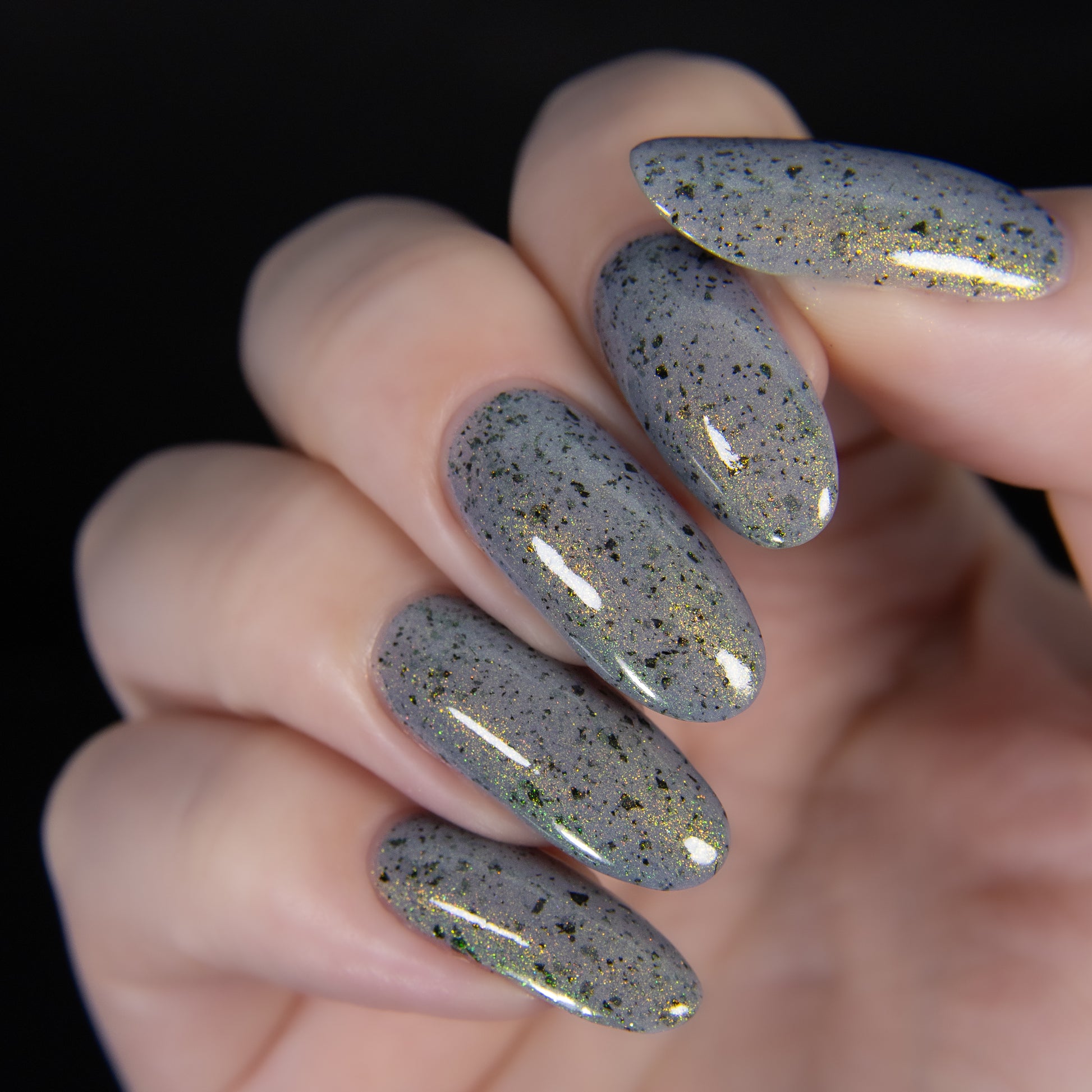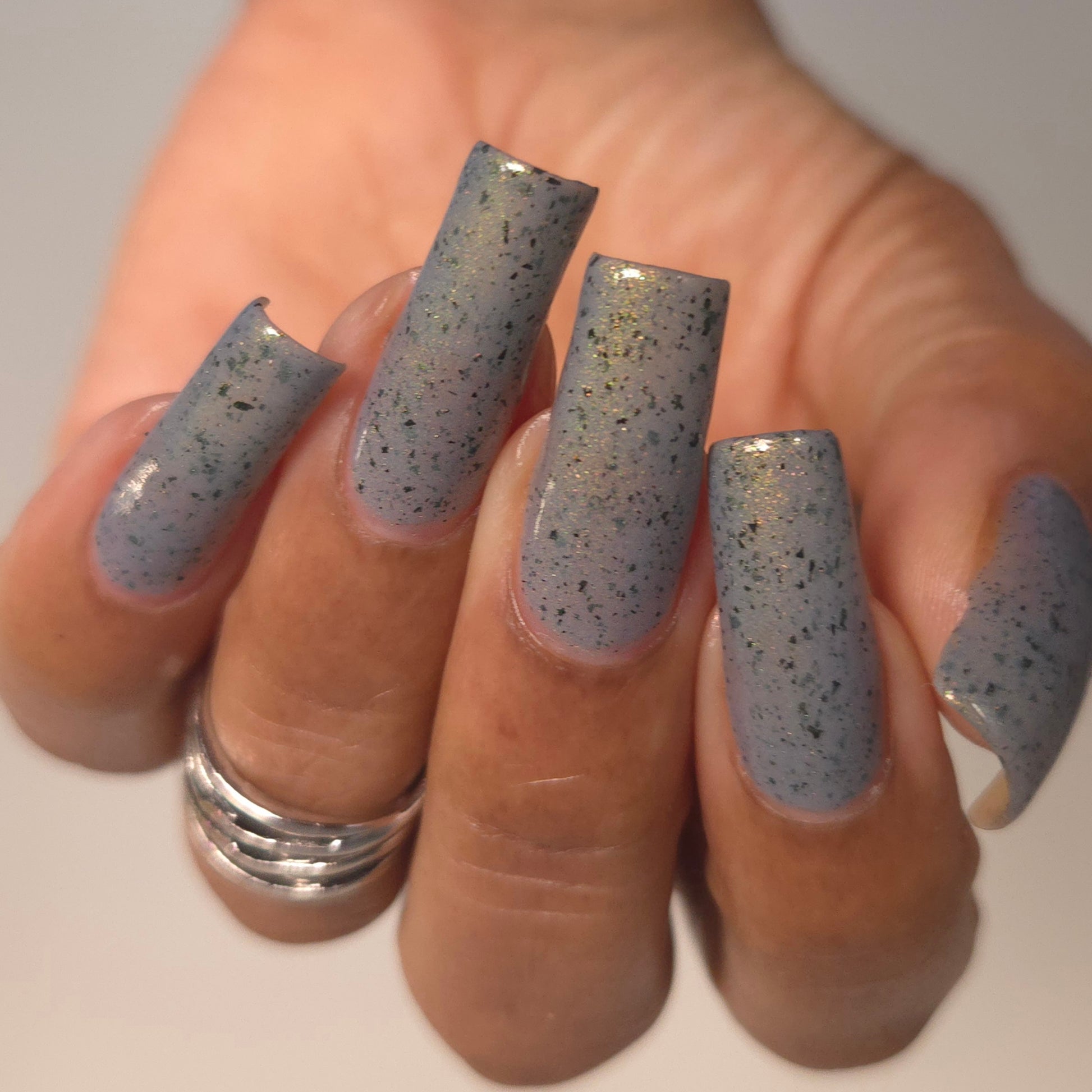 Please Note: These nail polishes contains flakes or glitter and will dry with a slightly textured finish they require 1-2 coats of Glossy top coat for a smooth finish.