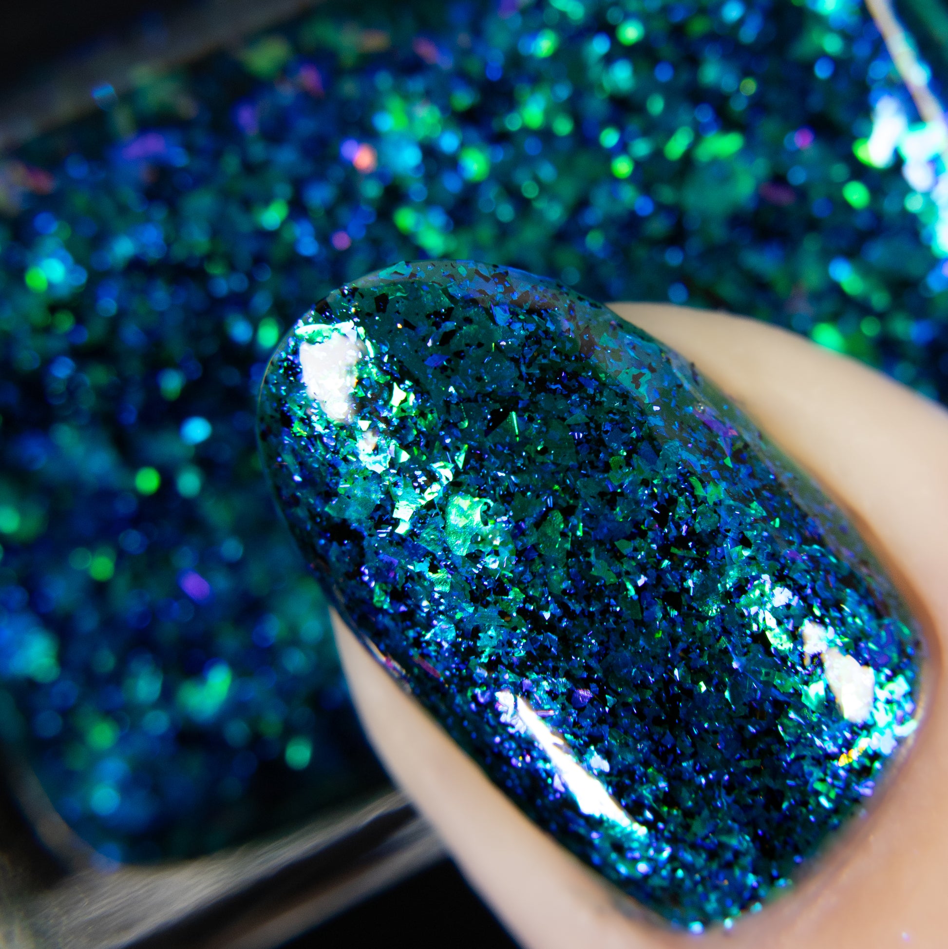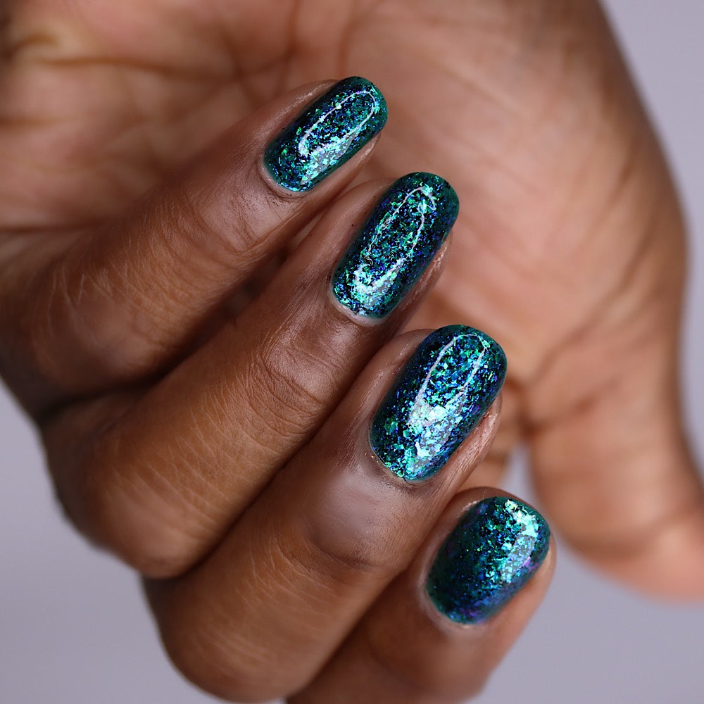 Please Note: These nail polishes contains flakes or glitter and will dry with a slightly textured finish they require 1-2 coats of Glossy top coat for a smooth finish.