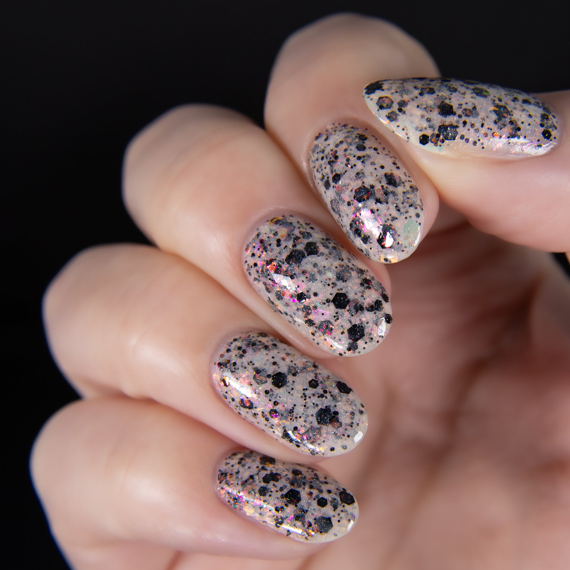 Please Note: These nail polishes contains flakes or glitter and will dry with a slightly textured finish they require 1-2 coats of Glossy top coat for a smooth finish.